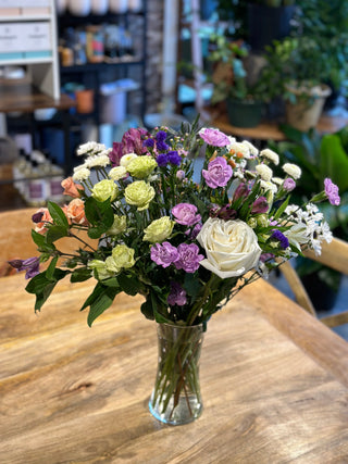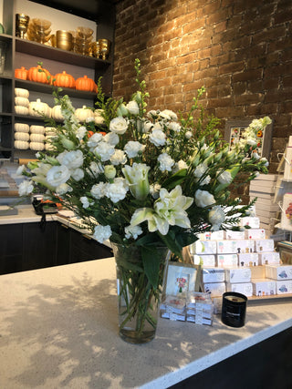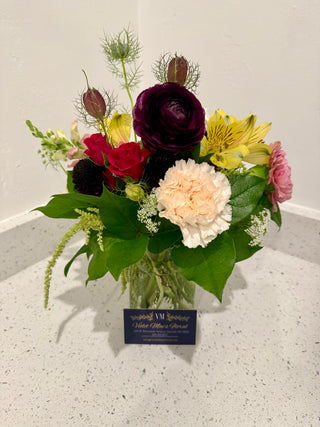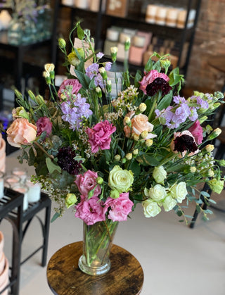 WITH JUST A FEW DETAILS, OUR DESIGNERS WILL CREATE THE PERFECT ARRANGEMENT FOR YOU! AFTER SELECTING YOUR BUDGET, SIMPLY SHARE ANY PREFERRED COLORS AND FLOWER VARIETIES, OCCASSION, SETTING OR ANY OTHER REQUESTS AND WE WILL USE OUR KNOWLEDGE AND ARTISTIC TALENT TO CREATE A LOVELY ONE-OF-A-KIND ARRANGEMENT FOR PICK-UP OR DELIVERY. Arrangements below are examples of custom designs - actual arrangements will vary depending on floral availability.