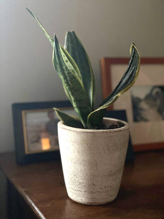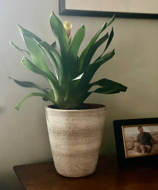 Concrete White-washed Terracotta Planter (Medium): With drainage plate