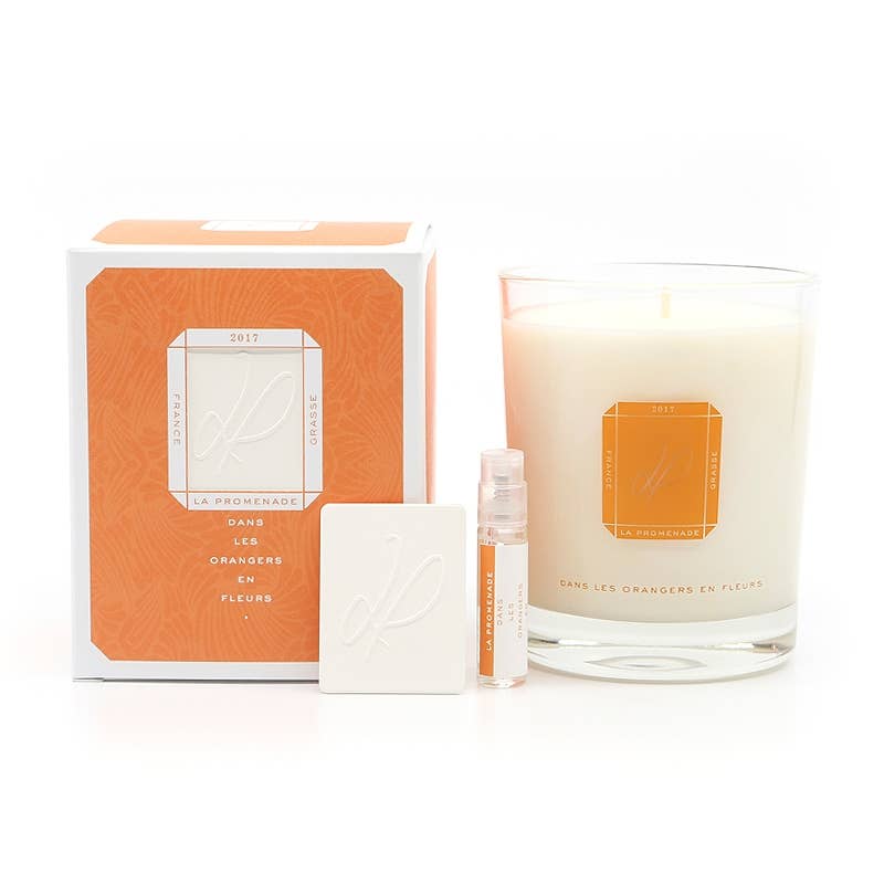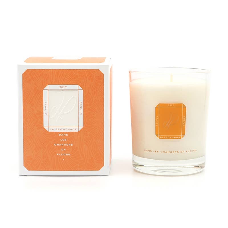 Scented Candle In Blossoming Orange Trees: With this delicate scent of blossoming orange trees, find yourself at dawn in a Mediterranean orange grove, where the fresh scent of flowers just blossomed and leaves mix. It then emerges notes of neroli and orange zest.