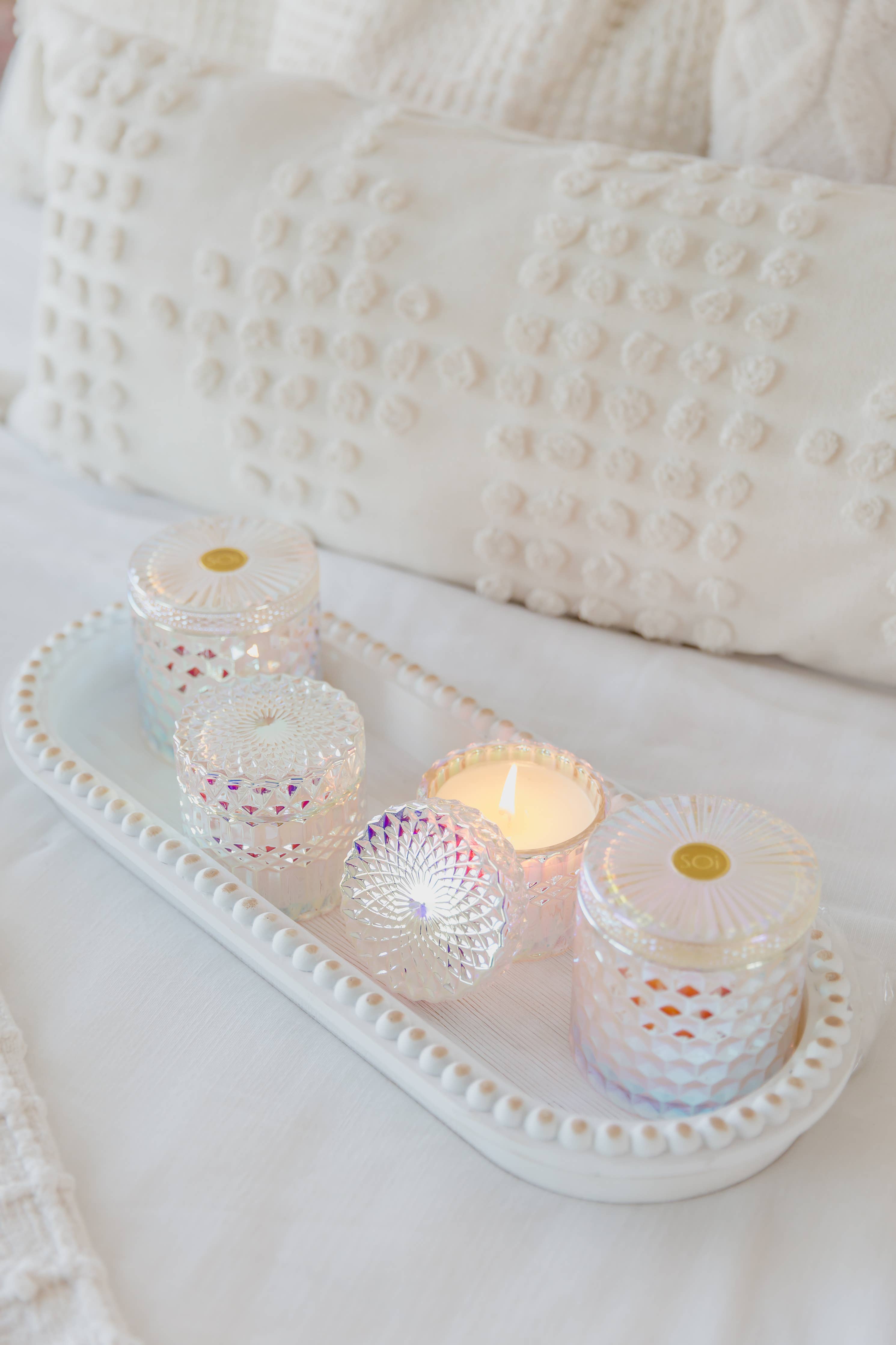 Bright and warm, Sparkling Vanille glows with golden vanilla sugar and a whisper of white amber. It's a scent that says home ”familiar, welcoming, and just a little bit luxe. Iridescent 8oz Candle Approx. 45 hour Burn time