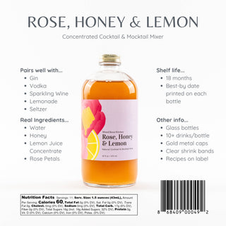 Rose Honey Lemon Cocktail Mixer and Mocktail Mixer, 16 fl oz