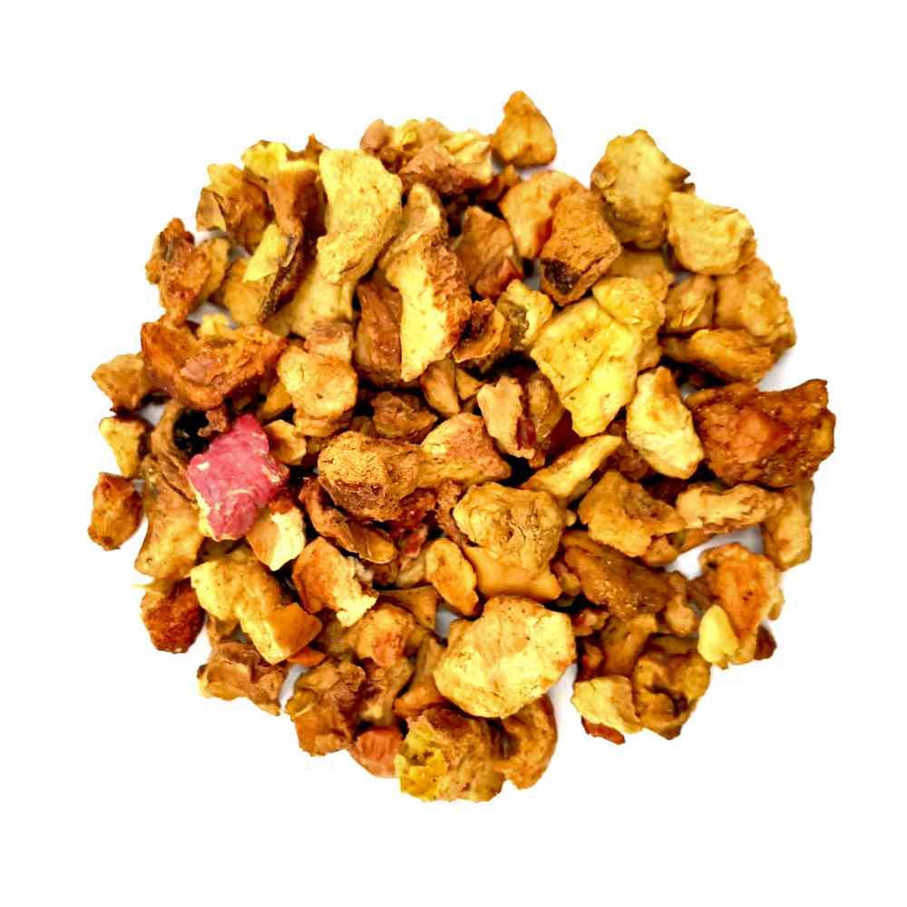 This tea is made of real Apple pieces and yields a mellow liquor that smells intensely like apple juice. The tea is a perfect mix of sweet and sour and makes a fantastic hot tea as well as a soothing iced tea.