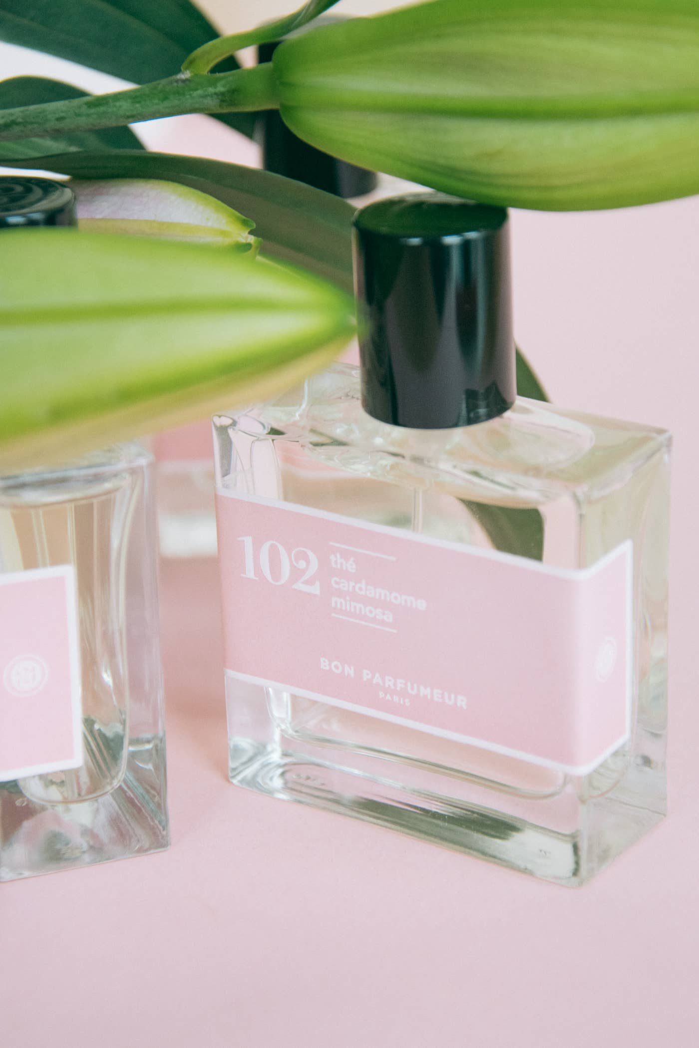 A citrus explosion at the top with facets of lime and bergamot, very refreshing. The heart built around green tea and mimosa also reveals a jasmine note. An aqueous and clean sensation develops. In the background, the roundness of the musks is associated with the woody notes of the oak moss.