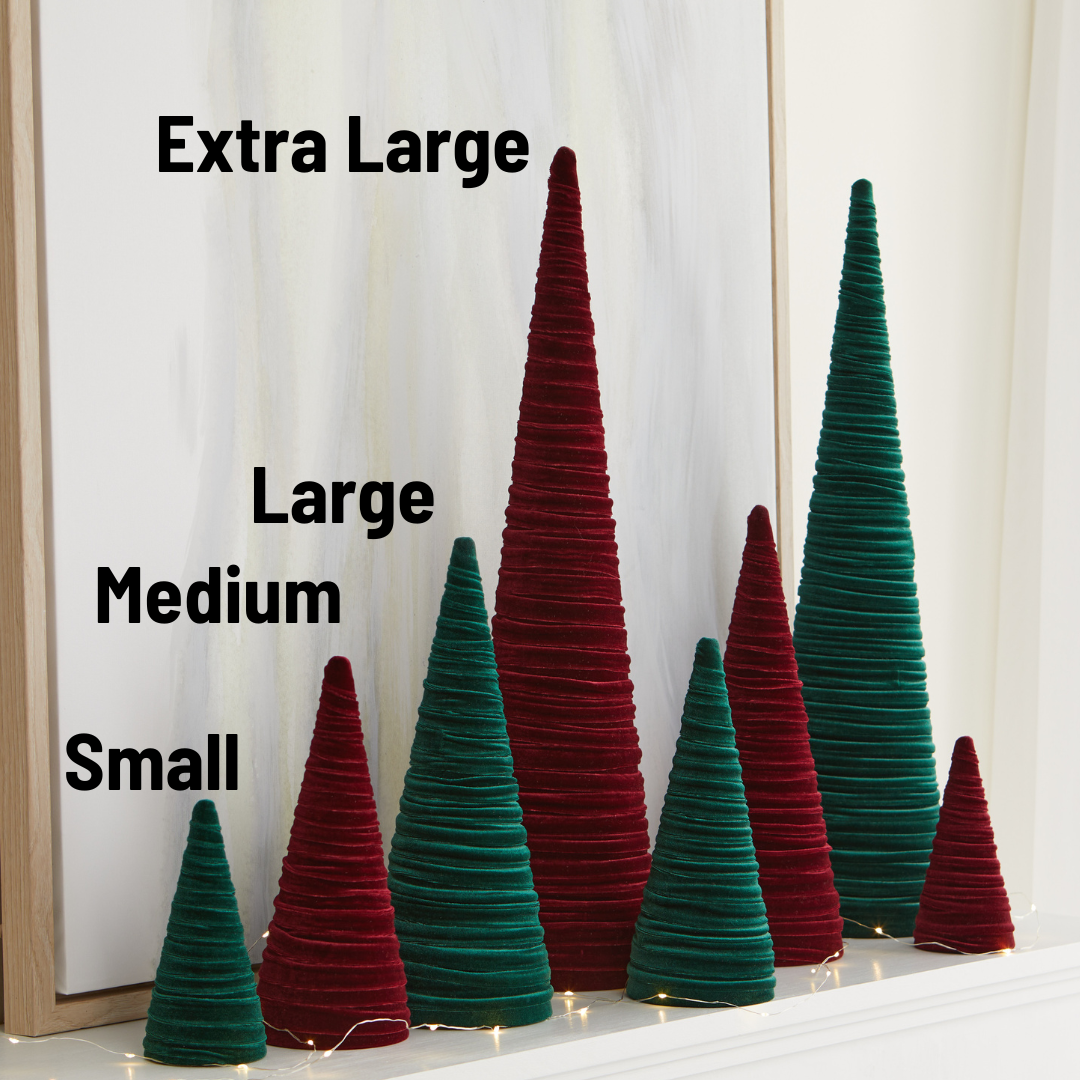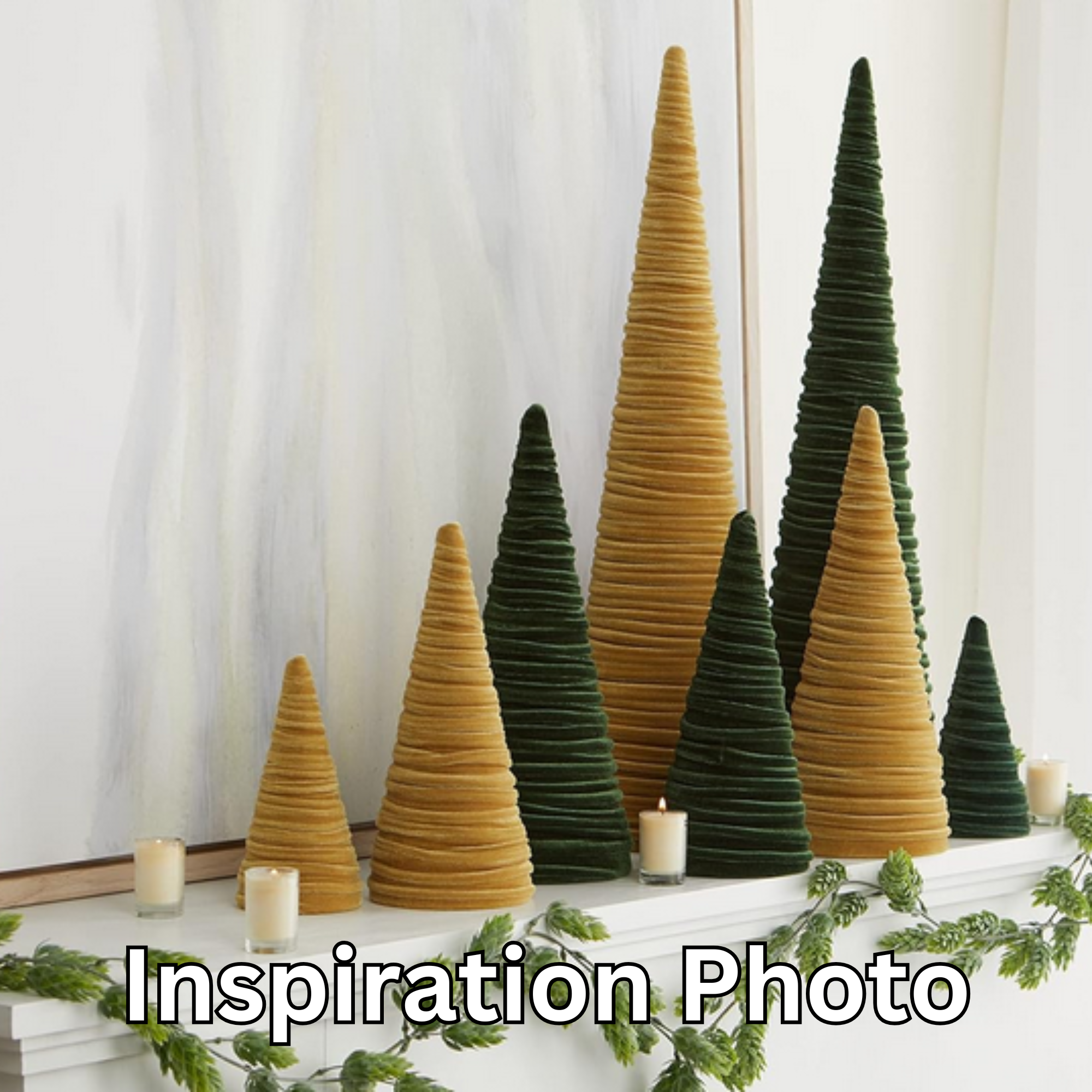 IDEAS FOR YOU: Handcrafted Heritage Craft, Moody Elegance, Christmas 2025, Winter Tablescape, Cozy Farmhouse, Statement Accents. PRODUCT DETAILS: This listing is for a single velvet cone in your selected color in EXTRA LARGE 8” diameter by 23” tall. Not sure what colors to get? Select "Assorted Best Sellers", specify QUANTITY and Michelle will individually choose an assortment of our most popular colors for you. ARTISAN CRAFTED: Our exclusive fabrics are handpicked in trending and curated colors. Custom designed and handcrafted in a small studio in Madison, Wisconsin, USA.