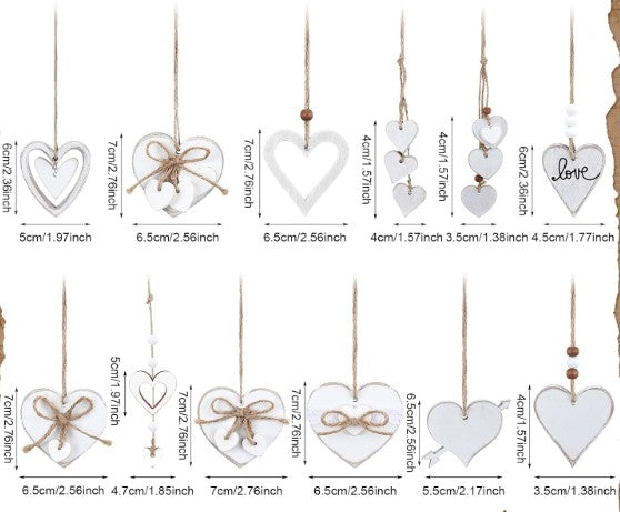 2 to 3" wooden Valentine's heart decoration - various colors/styles