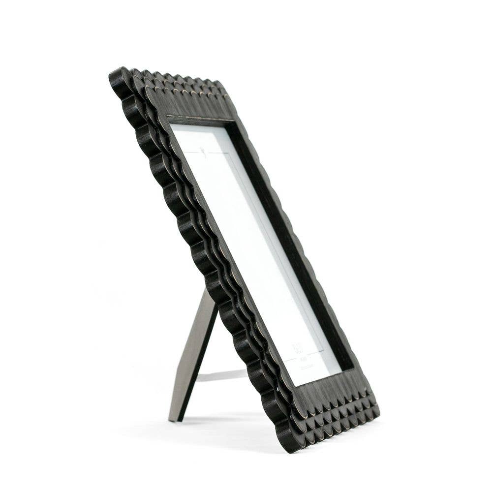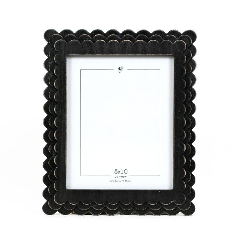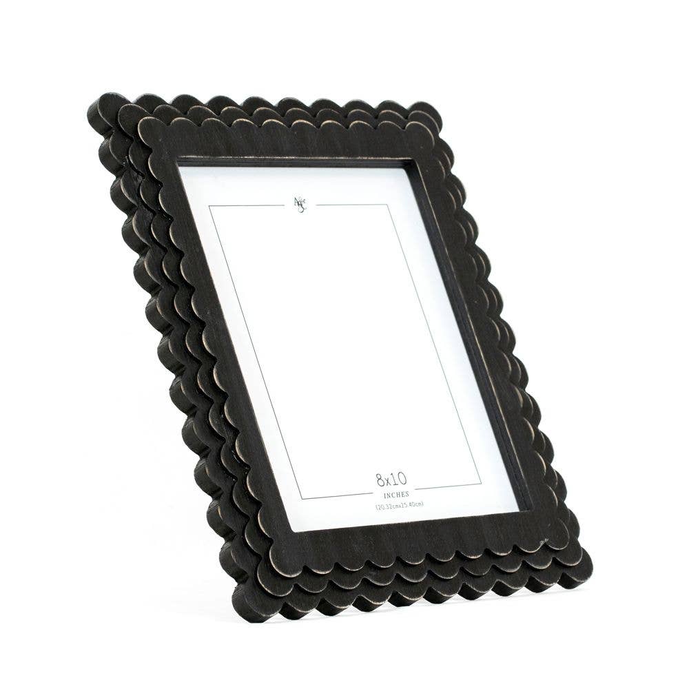Add a touch of refined elegance to your home with this Scallop Collection photo frame. Crafted from wood with a chic scalloped edge, this 11x13x1 frame is designed to display an 8x10 photo in style. The sleek black finish provides a bold, modern contrast, making it a standout piece in any room. Perfect for showcasing your treasured memories, this frame offers both sophistication and a timeless appeal. Our scalloped frames have been so popular! Make sure to add this new larger size today!