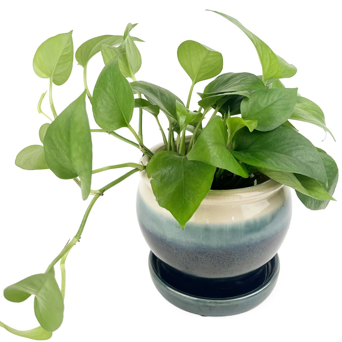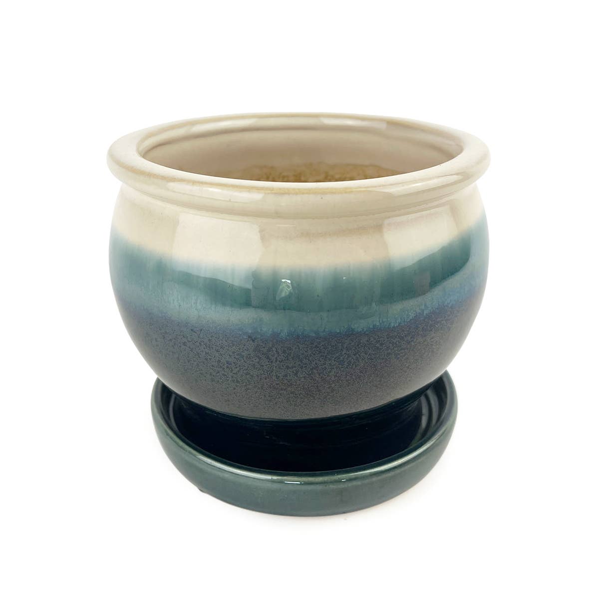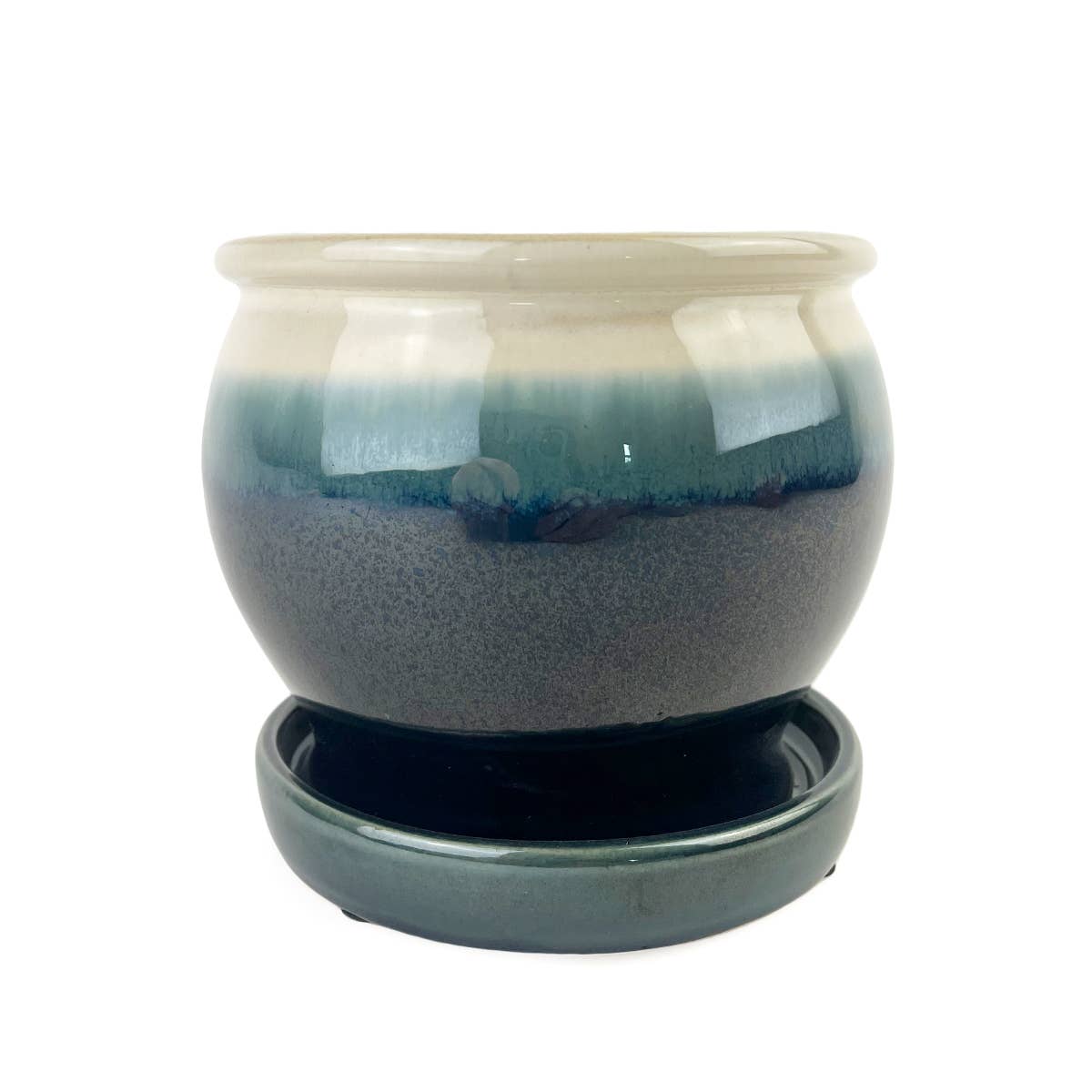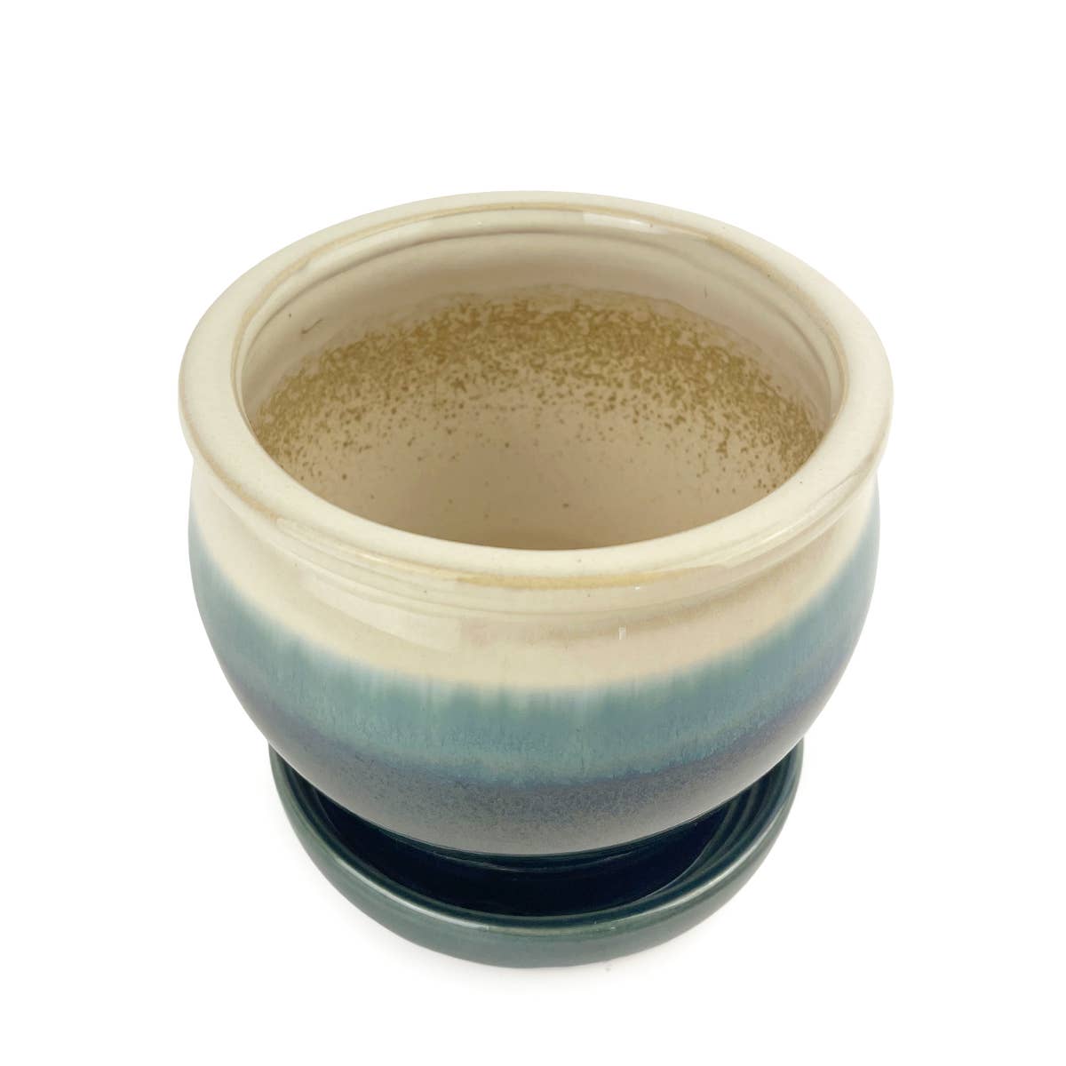 This sleek and modern ceramic planter is the perfect way to display your favorite indoor or outdoor plants. The dark blue color is both stylish and sophisticated, and the cream rim adds a touch of elegance. The attached saucer makes it easy to keep your plant's roots healthy and prevent water from spilling onto your surfaces.