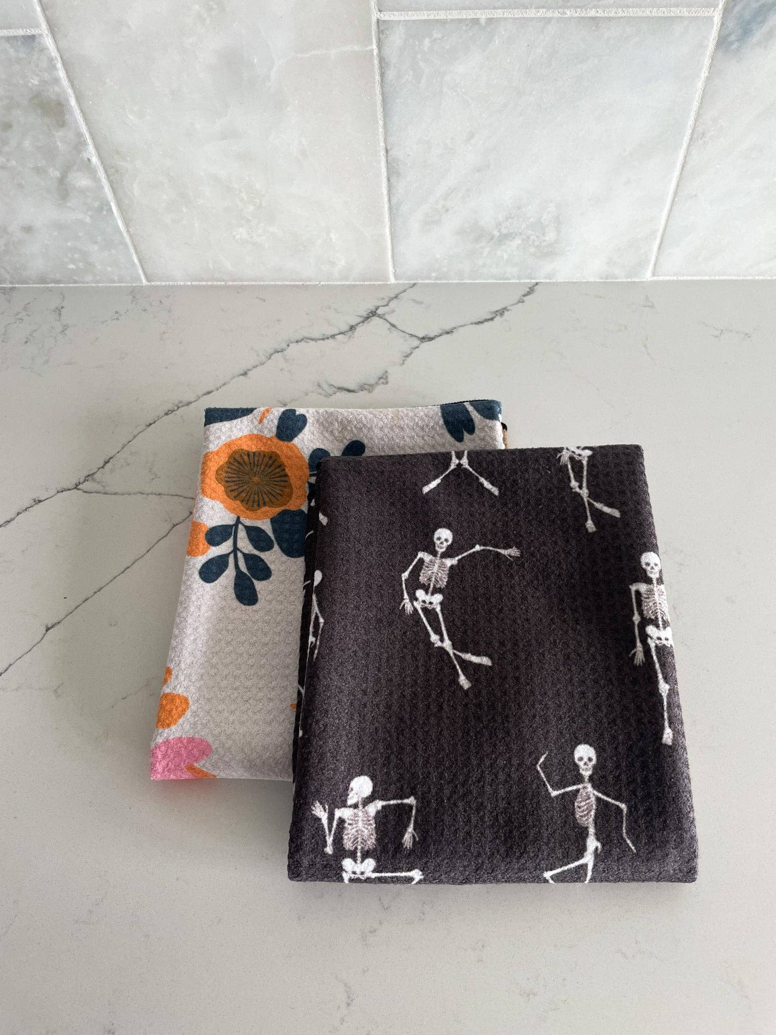 The perfect kitchen towel with gorgeous patterns on both sides. The towel's waffle knit microfiber design makes it super absorbent, and our size makes them perfect for drying dishes, cleaning up spills, or wiping down your countertops. No more cleaning and drying with sub-par smelly towels, the quick-drying, absorbent features make this towel stand out above the crowd!