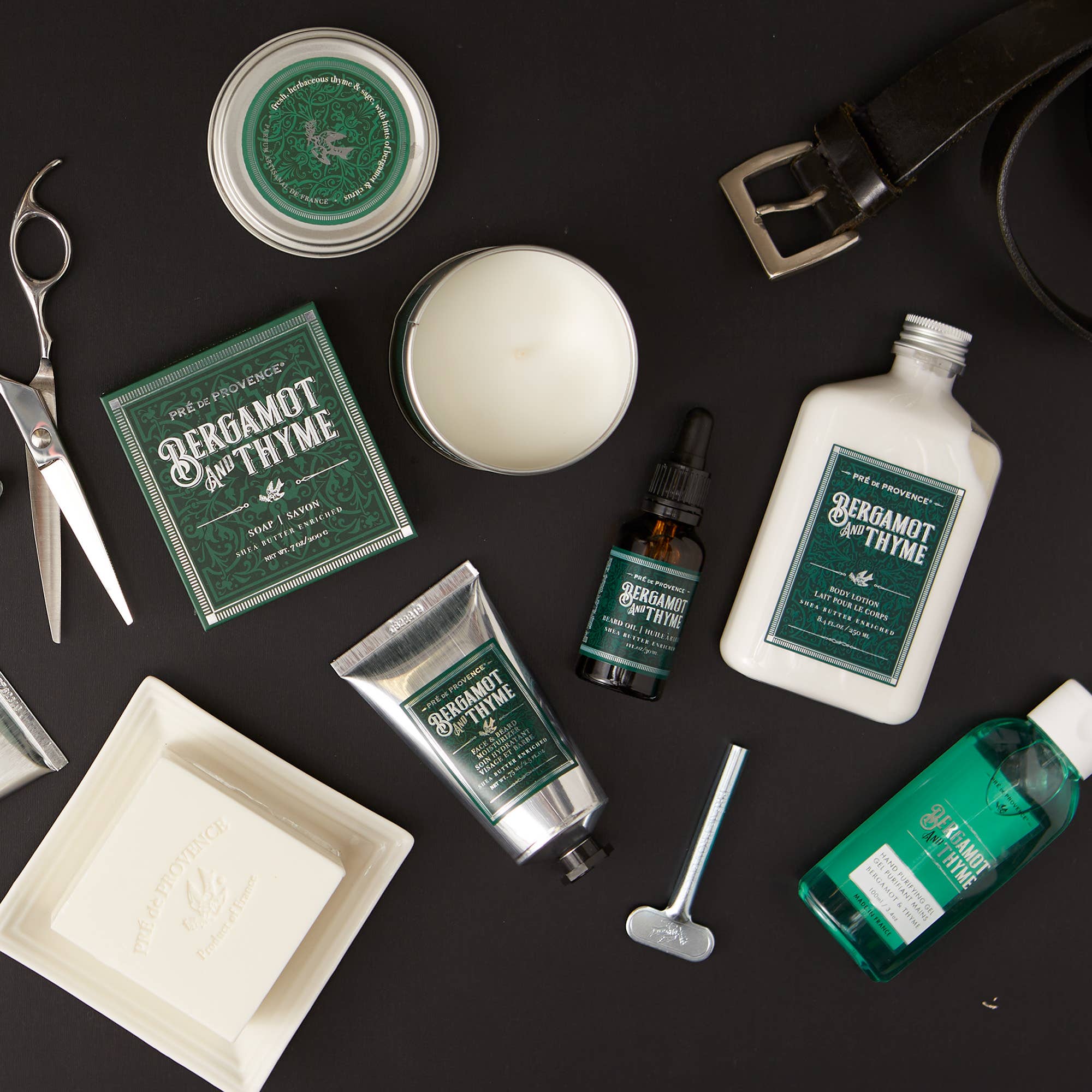 The Bergamot and Thyme also provides shaving cream, aftershave balm, body lotion, body wash, and shave soap.