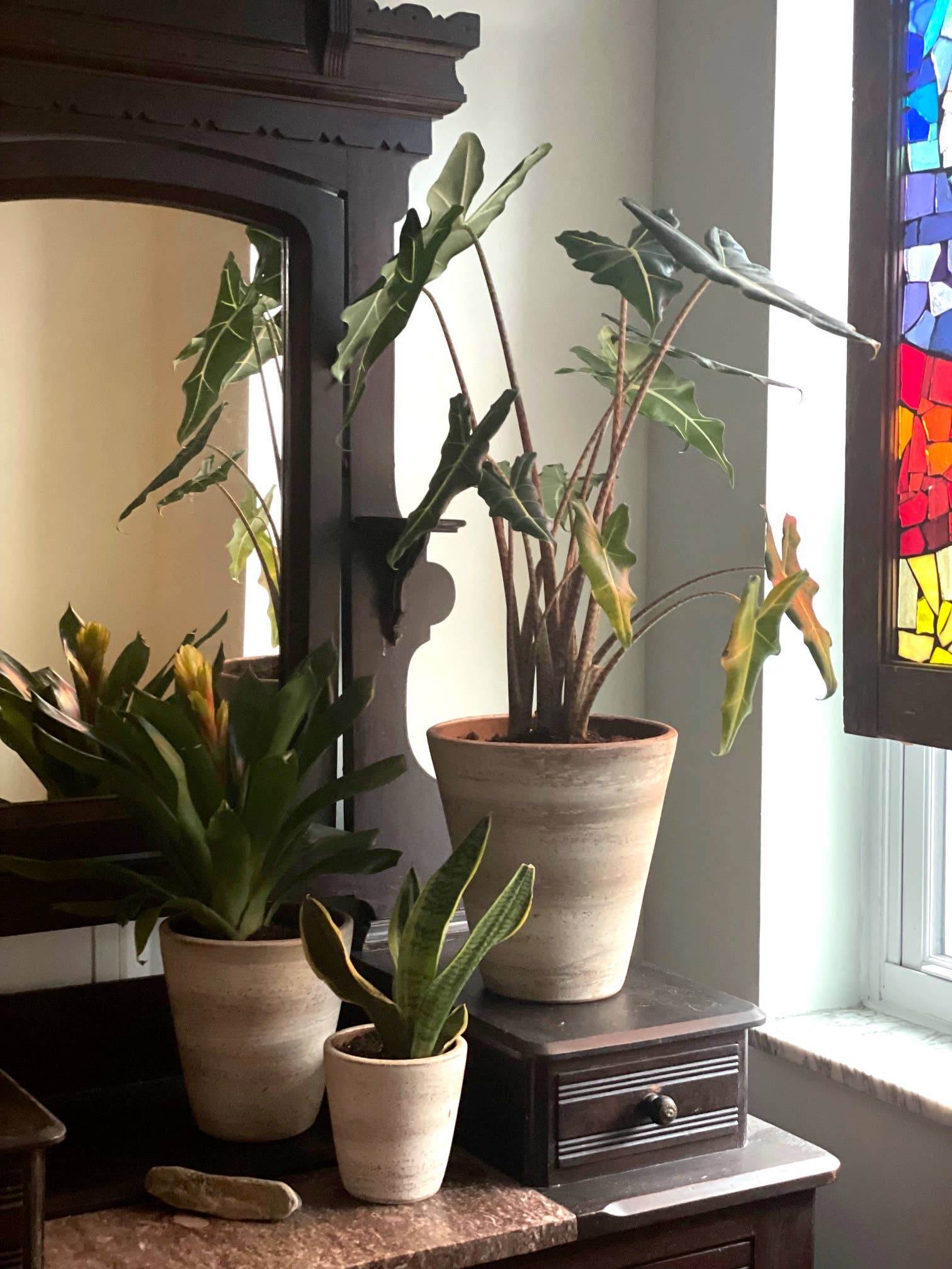 Concrete White-washed Terracotta Planter (Medium): With drainage plate