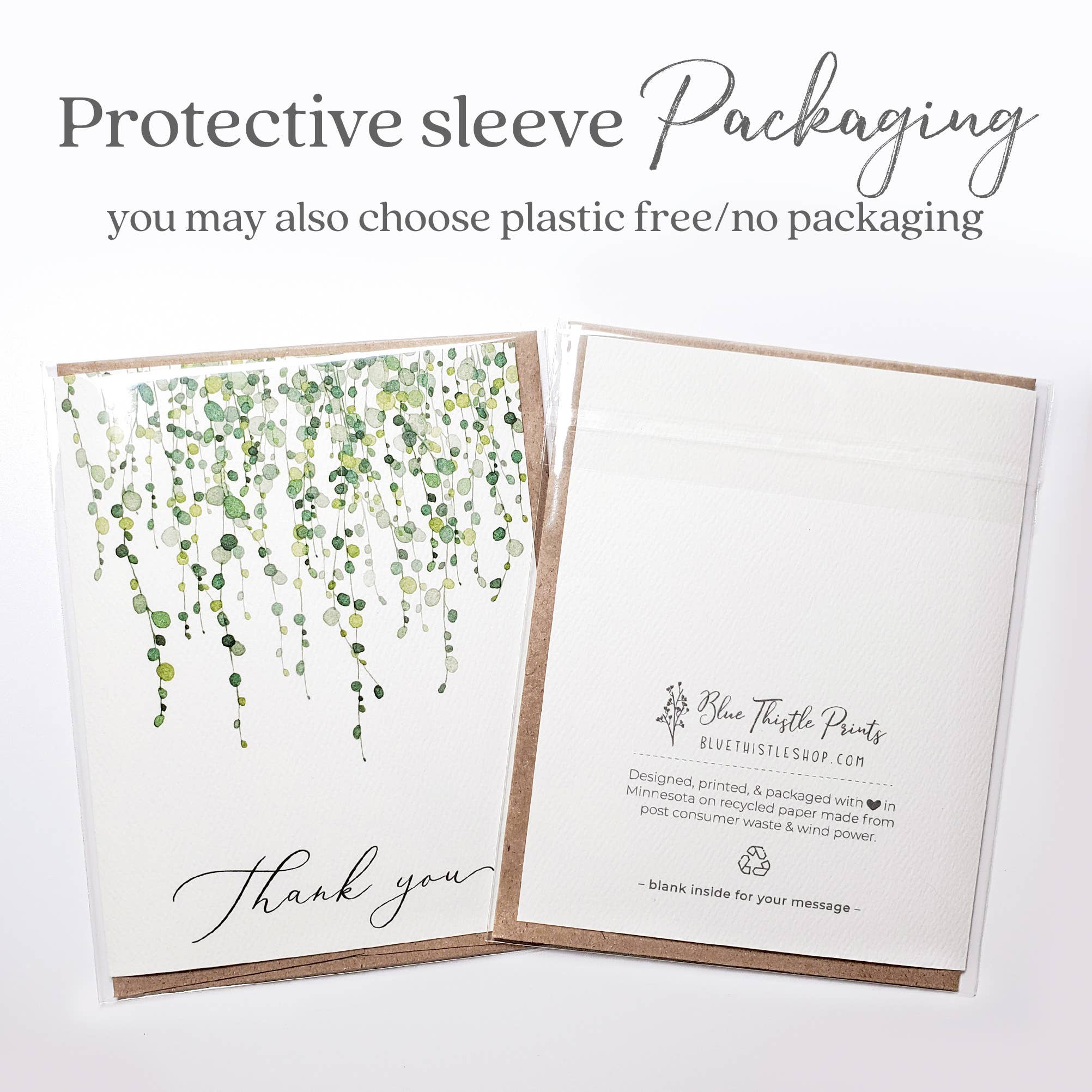 Greeting card size: A2 (4.25 x 5.5 inches). Includes envelopes, blank inside. Printed on FSC Certified 80 lb watercolor textured cardstock, made from recycled materials & renewable energy.