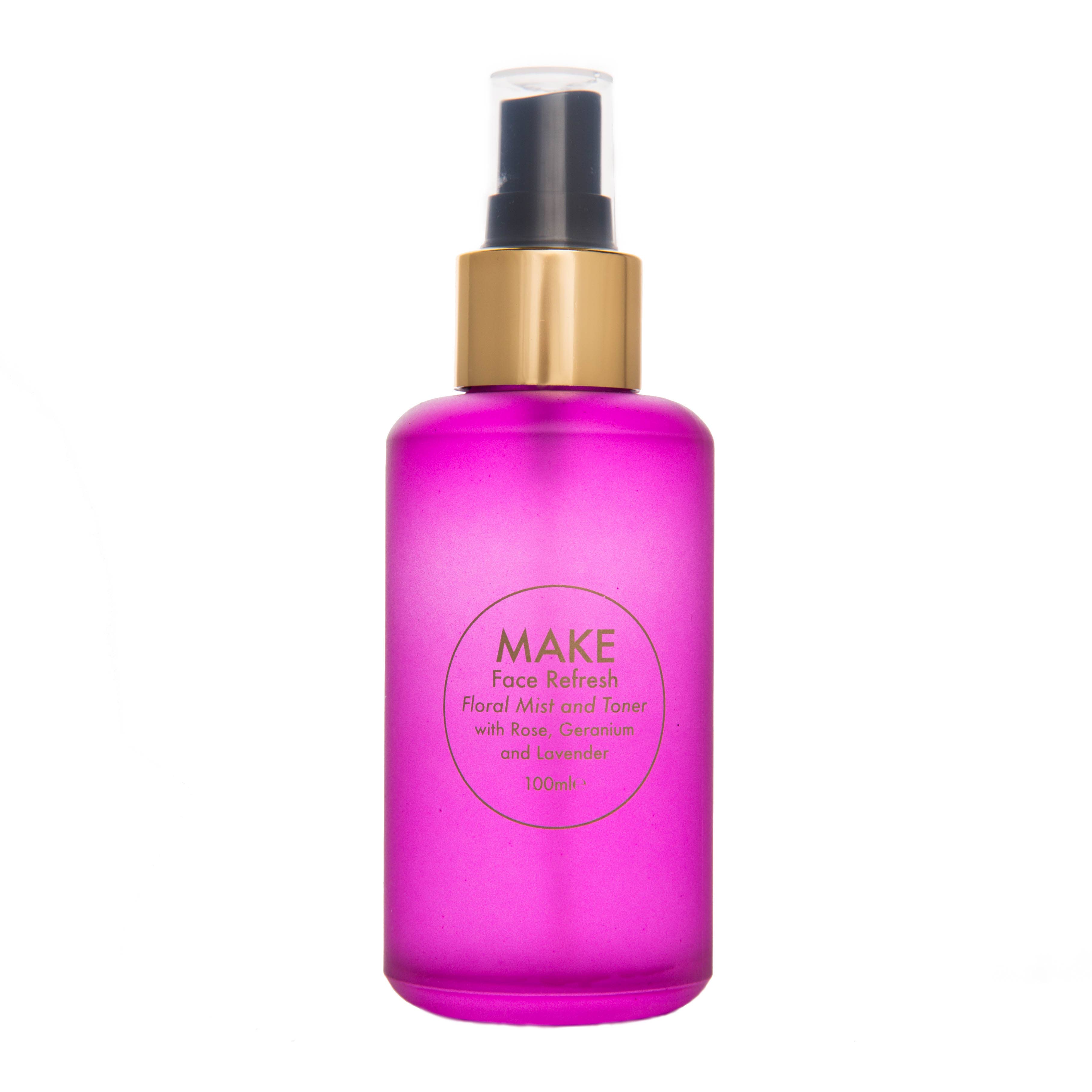 MAKE Face Refresh uses natural flower waters of rose, geranium and lavender to hydrate, balance and tone the skin.  Perfect 100ml size for aeroplanes to hydrate tired, parched skin.  ACTIVE INGREDIENTS Rose, Geranium and Lavender Flower Water Size: 100ml