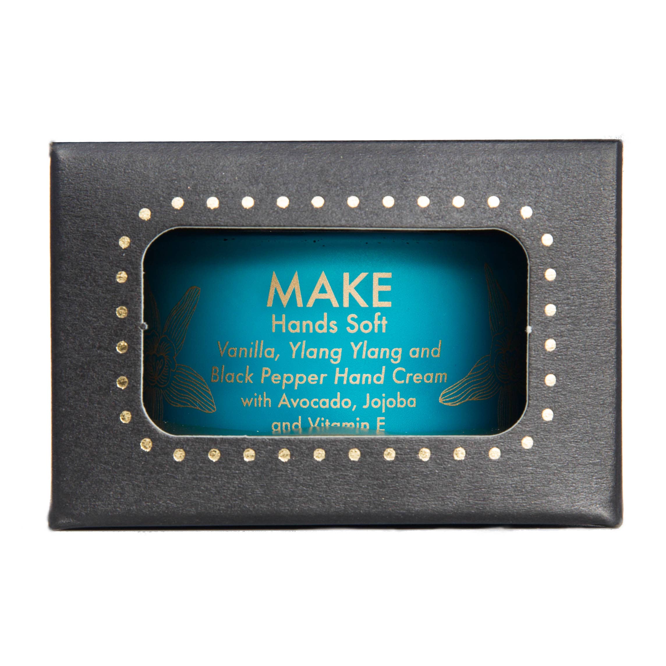 A rich, nourishing hand cream to soften and protect the hands. Jojoba oil and beeswax form a fine layer on the skin which protects against the elements, while avocado and thistle oils are intensely moisturising and rich in antioxidants. A blend of Madagascan vanilla, ylang ylang and black pepper gives Hands Soft a sublimely seductive scent. Quoted by YOU Magazine (Mail on Sunday) as being the "Holy Grail of mitt smoothers"