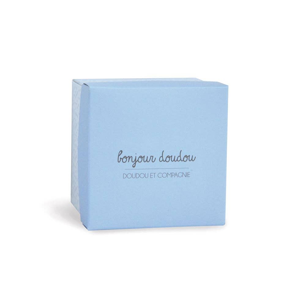 This adorable baby blanket and plush stuffed bunny has long ears, a white body and accent colors pink or blue on feet and ears. Pink version has pink bow and blue version has blue bowtie. Baby blankets are perfect to soothe baby. And, baby will be comforted by a plush bunny friend. Designed in France and comes in a giftable box, beautiful as-is or for wrapping. A great newborn baby or baby shower present.
