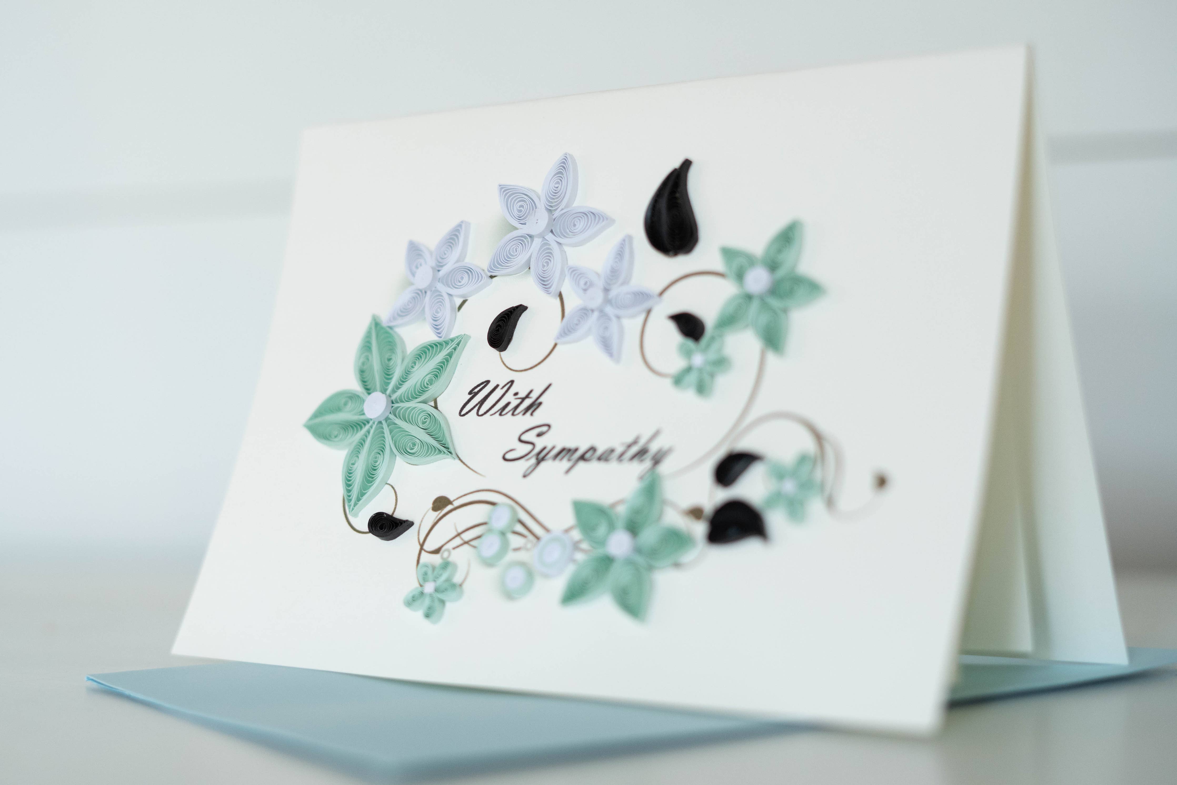 Exquisitely quilled flowers adorn this beautiful card, designed to comfort and encourage your loved ones.
