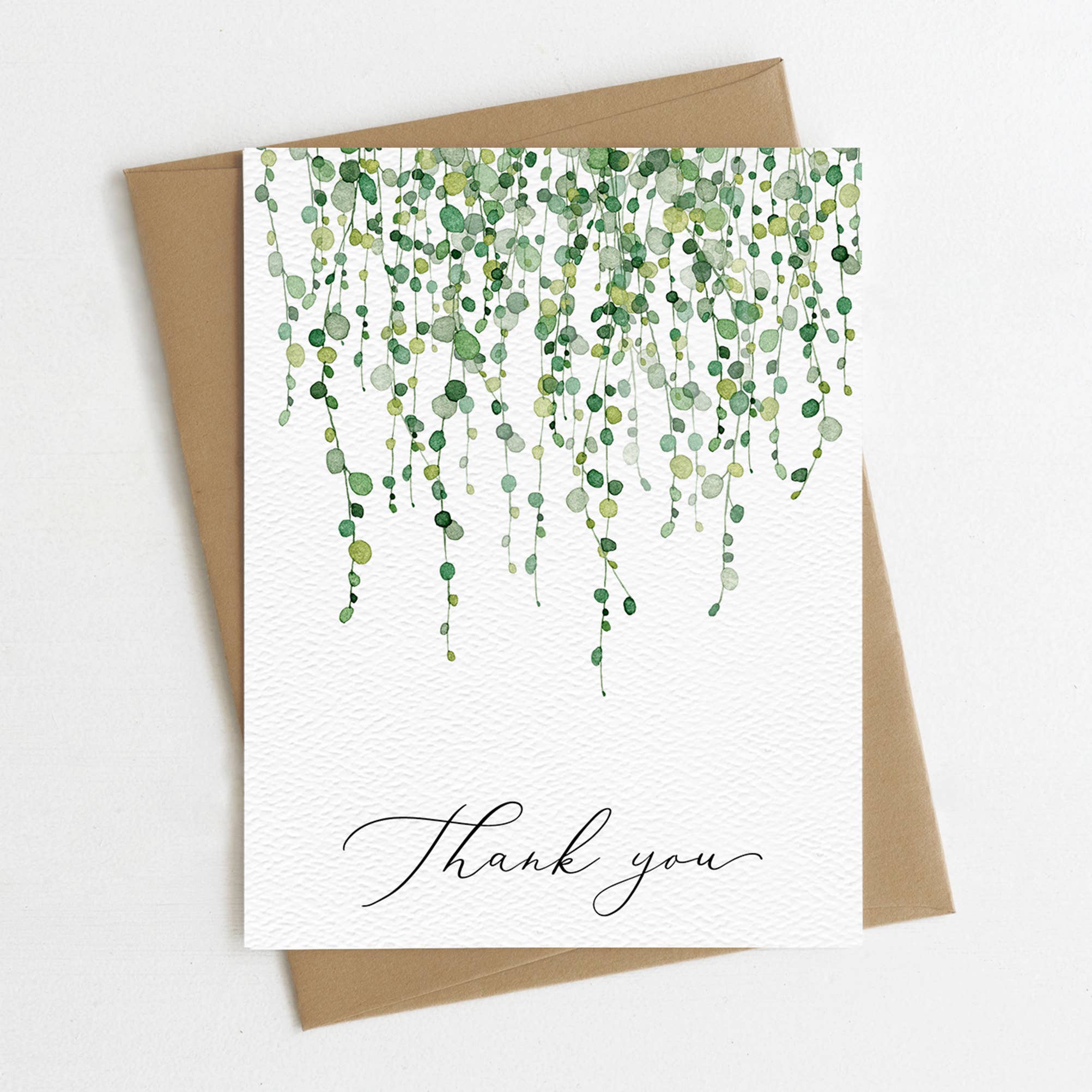 This greenery thank you card is an elegant and eco-friendly way to thank friends and family. Each handmade card is printed on recycled paper that has a luxurious and uniquely textured feel.